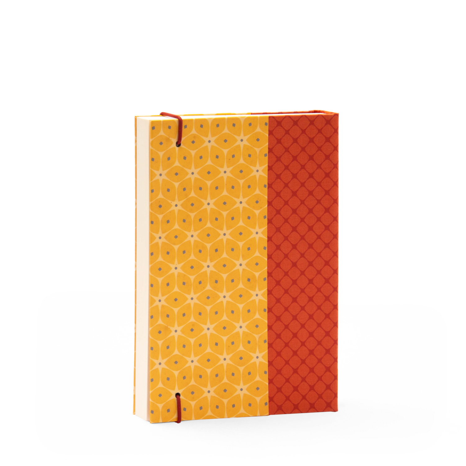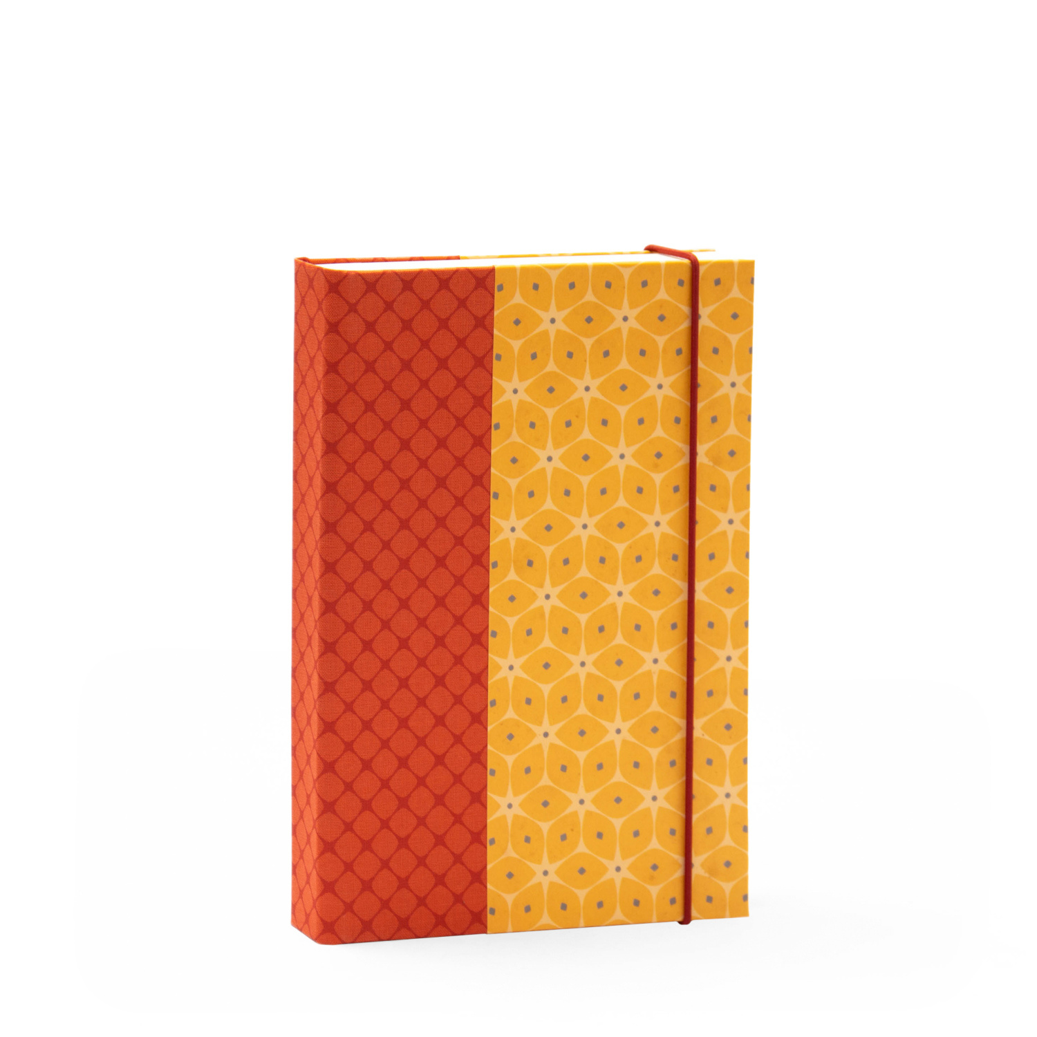 Het Jackie-notitieboek Somerset brengt warmte en ritme samen. Het heldergele patroon met kleine blauwe accenten voelt licht en zonnig, terwijl de diepe rode rug voor balans en diepte zorgt. Een karaktervol boekje dat meteen de aandacht trekt.