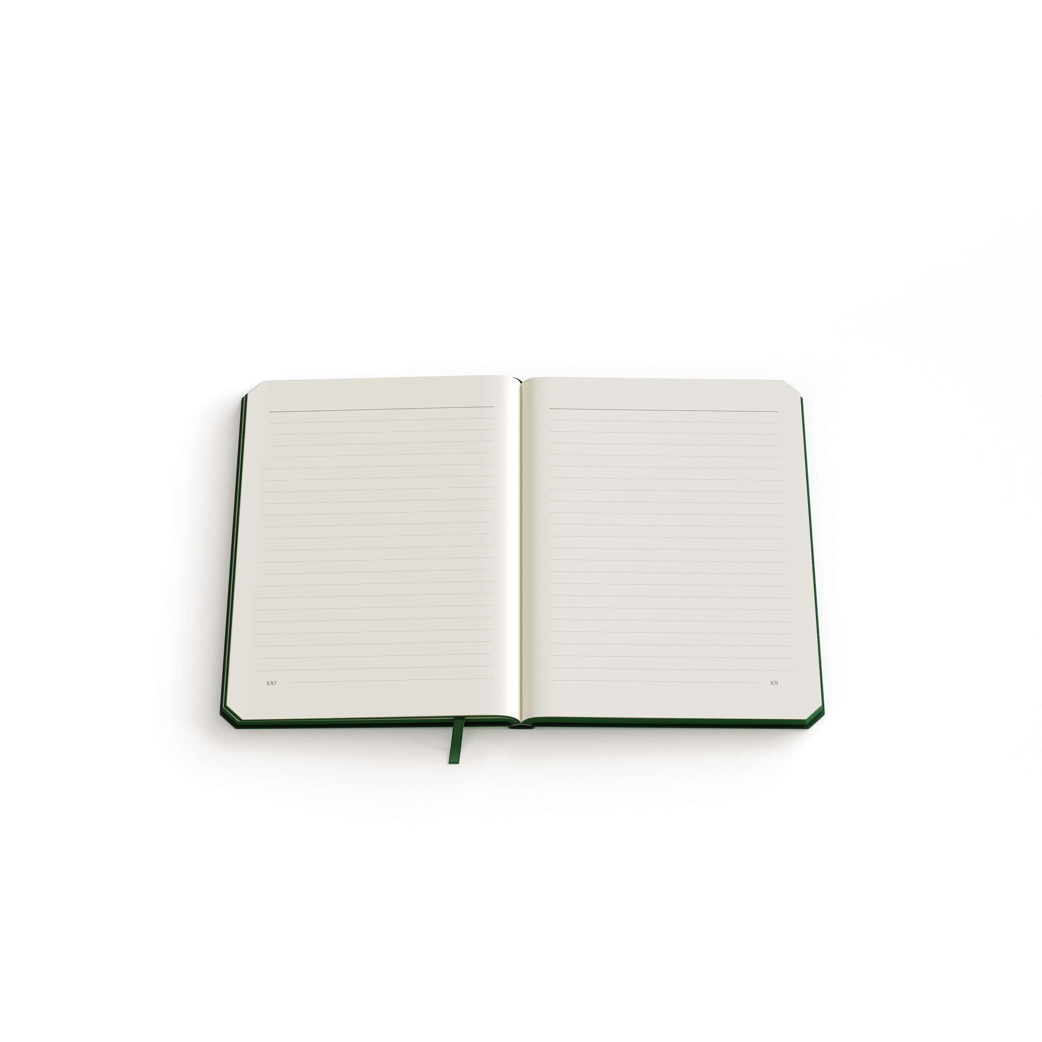 Het notitieboek blijft plat open liggen dankzij een aangepaste bindwijze.