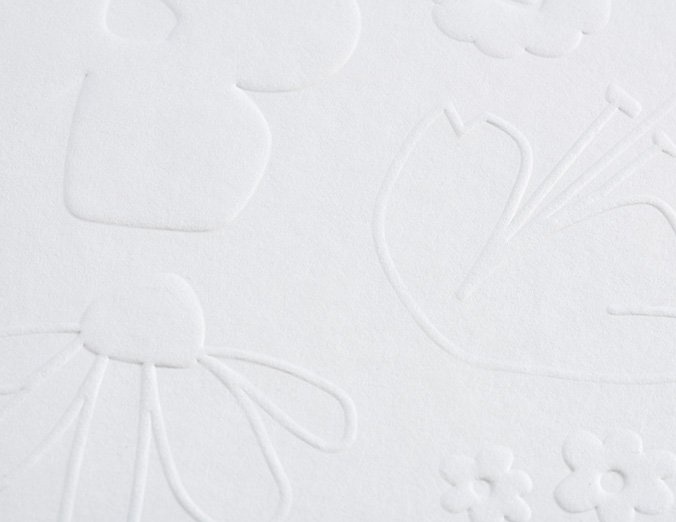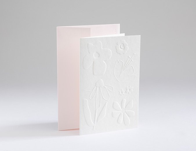 Een kaart vol bloemetjes — elk in hun eigen lijn, hun eigen taal. Sommige open, andere nog in de knop. Zonder inkt of kleur, en toch zó levendig.
