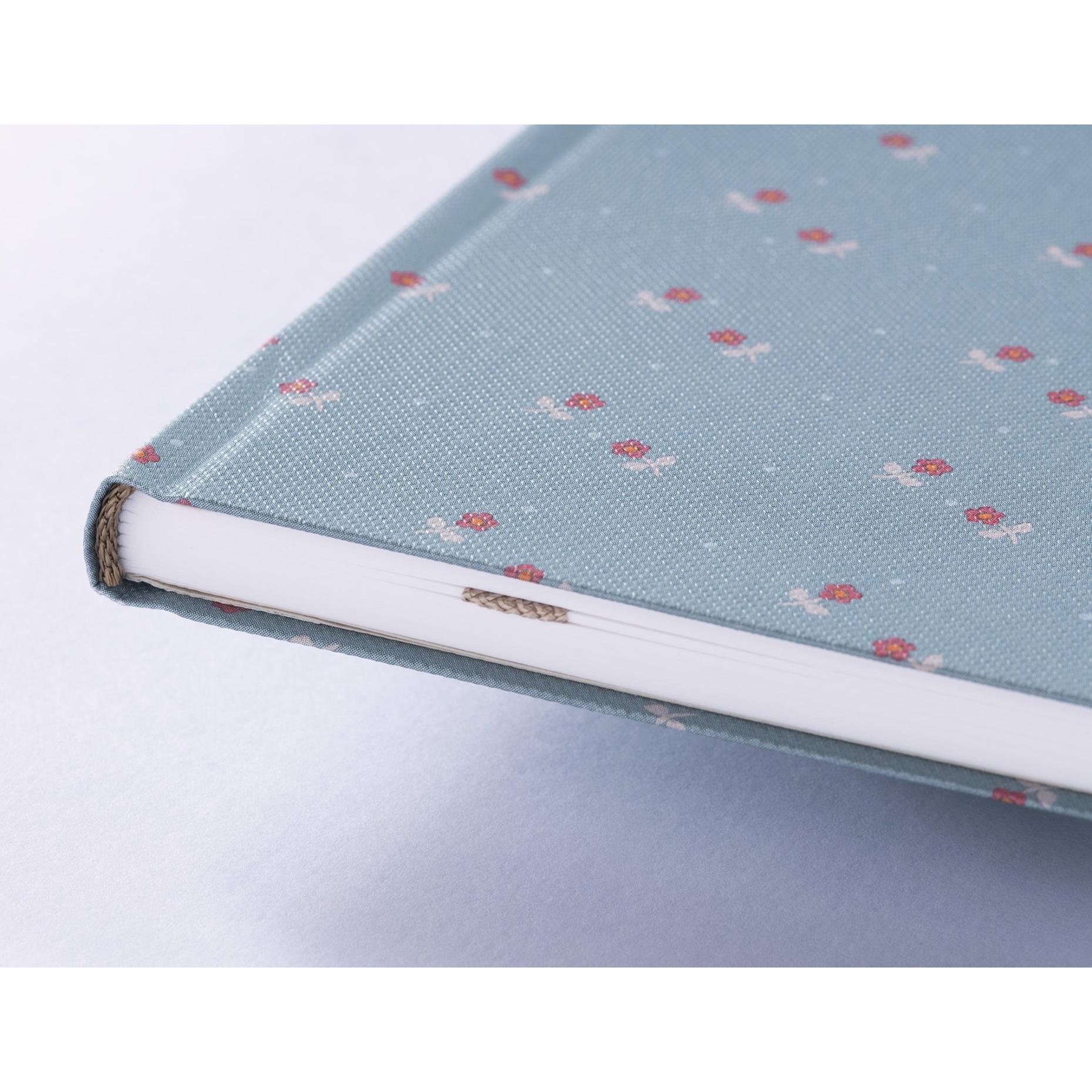 De omslag is bekleed met linnenstructuur en versierd met rode en witte bloempjes. Binnenin vind je 112 pagina’s puntrasterpapier van 115 g/m² — aangenaam voor elke pen. Genaaid gebonden en voorzien van een handige bladwijzer in bijpassende tint.