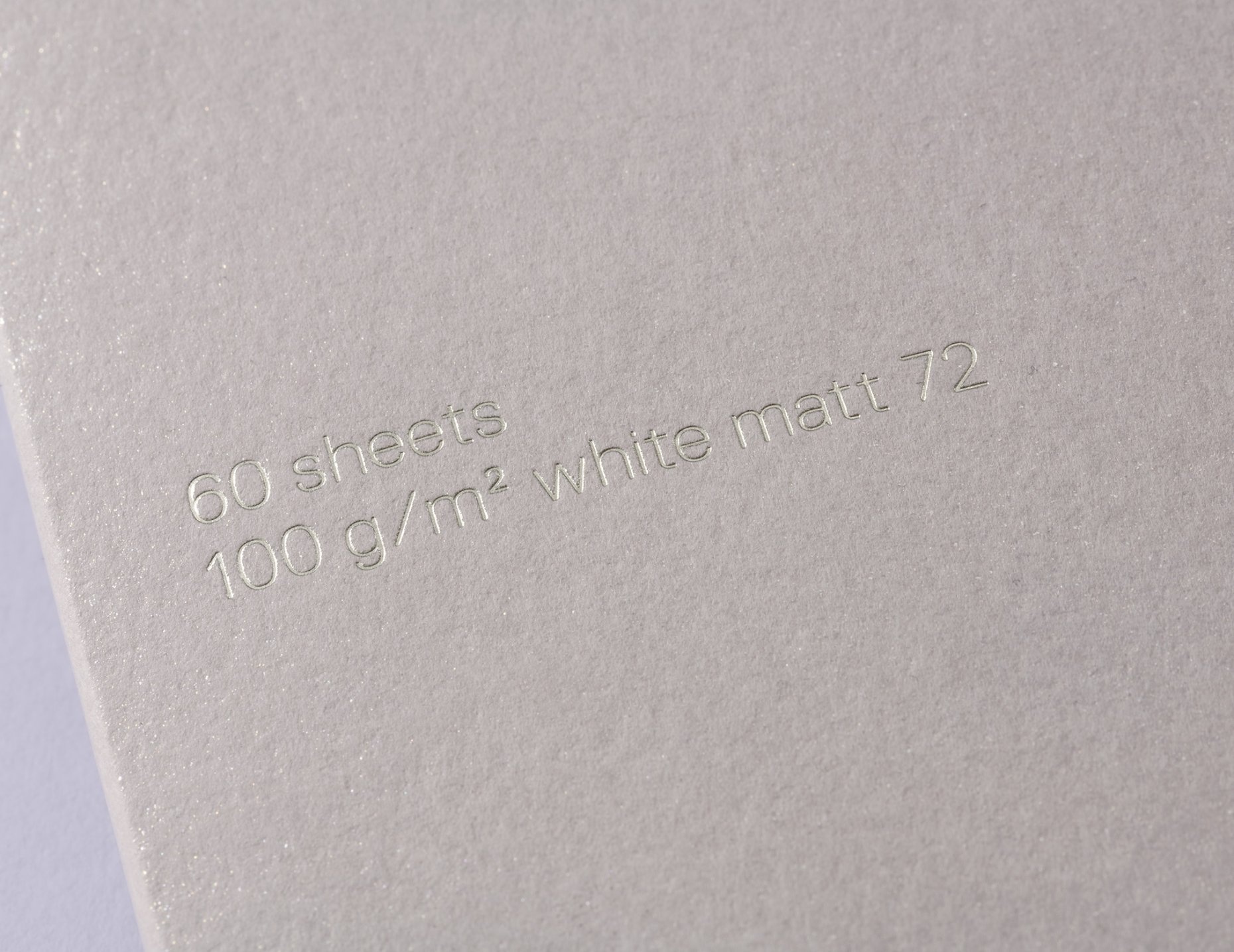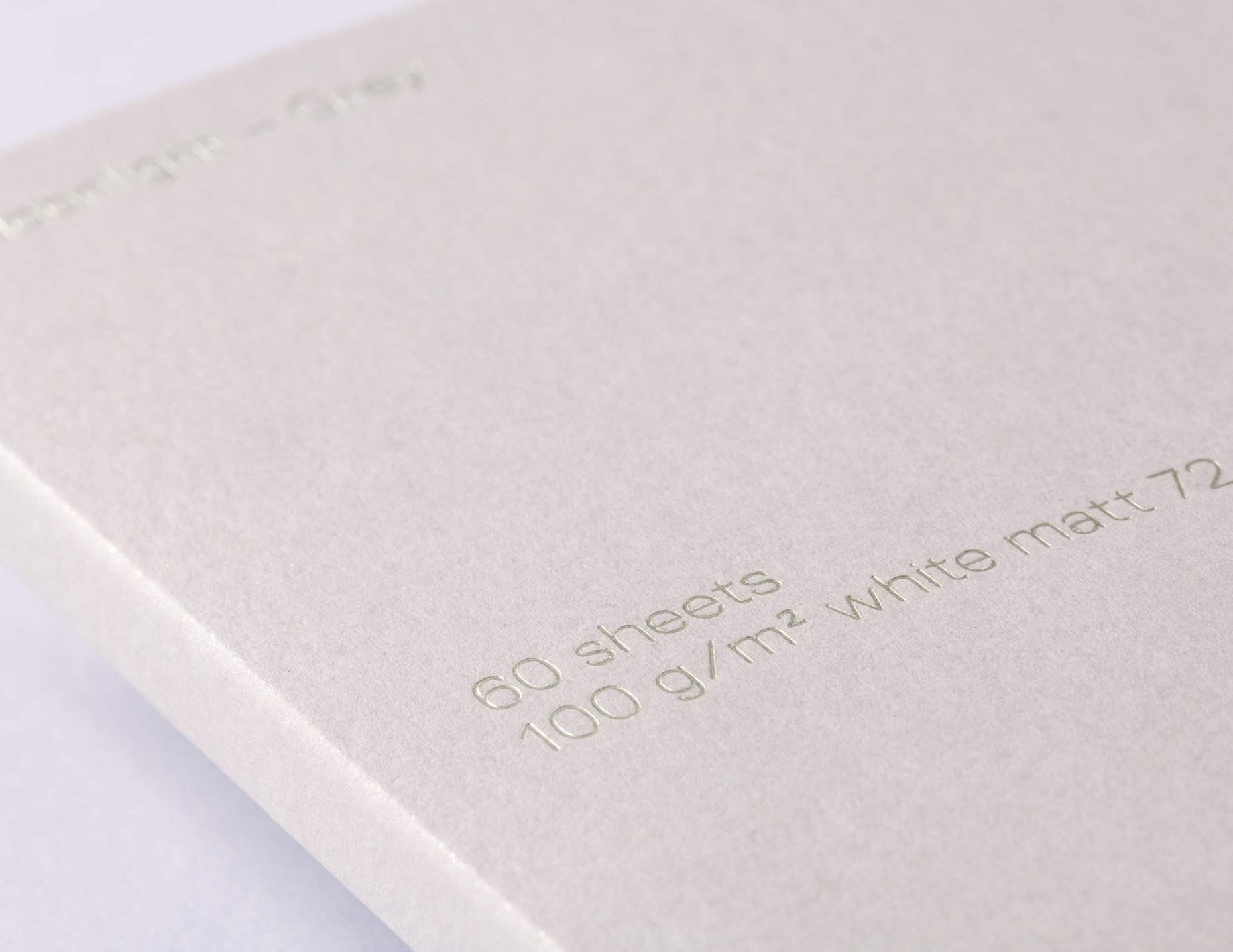 De note(pad) collectie van Gmund staat voor pure schoonheid en subtiel design. Moonlight Grey is een ode aan sereniteit: een zachtgrijze omslag met verfijnde hotfoil details, gevuld met 60 vellen wit, mat papier (100 g/m²).