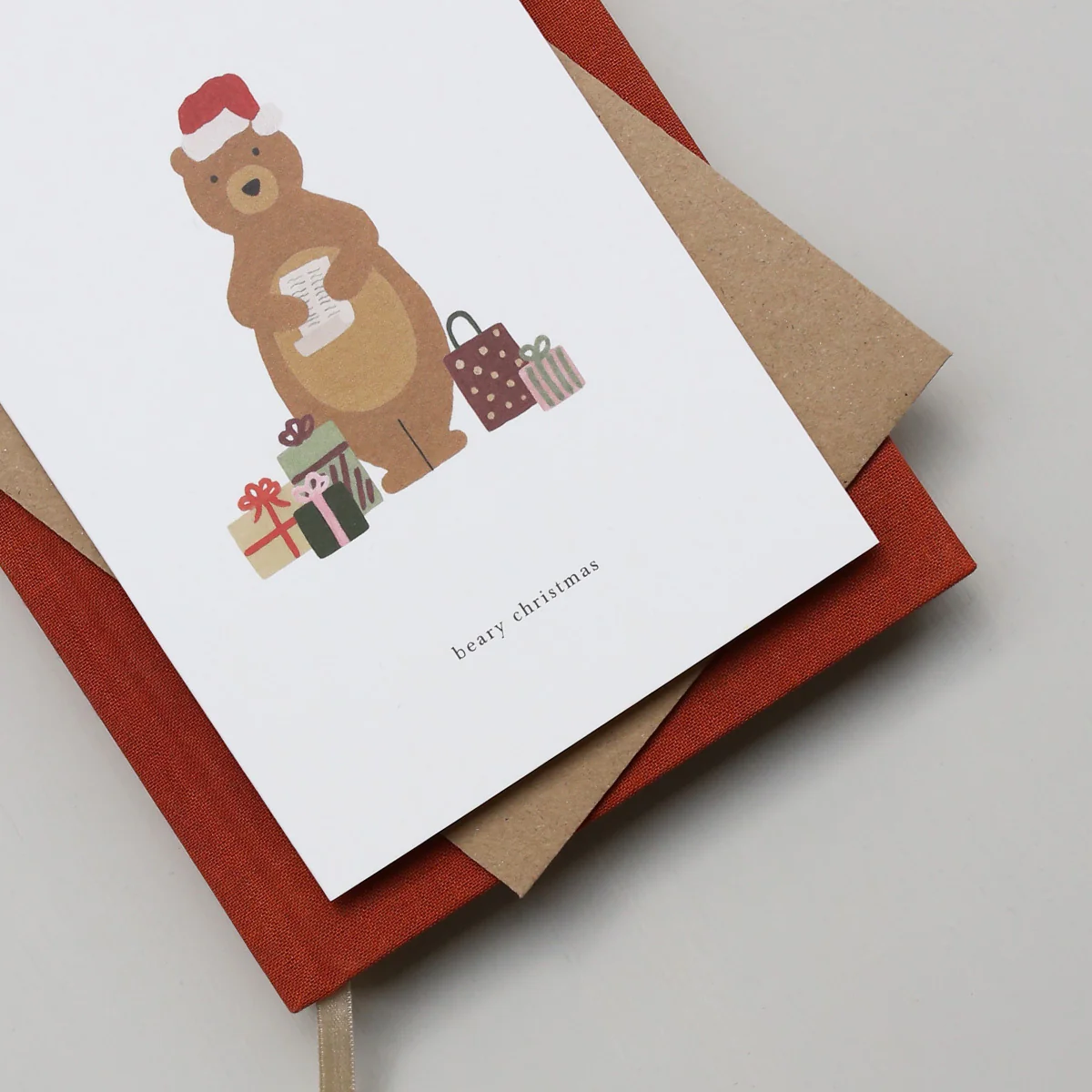 Een vrolijke kerstkaart van Kartotek met een schattige beer in kerstsfeer en de tekst “beary christmas”. Perfect om je warme wensen te sturen naar vrienden, familie of collega’s.