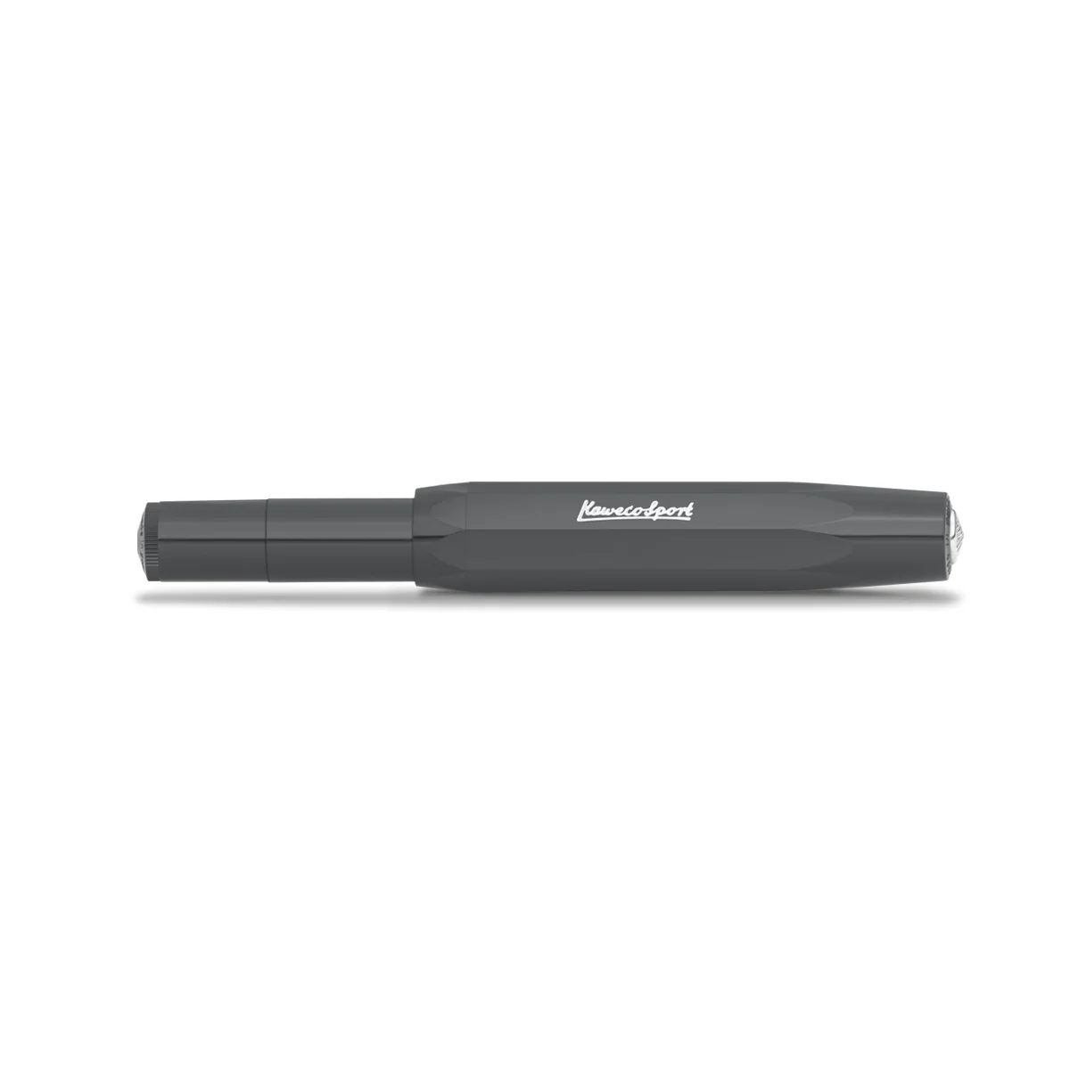 Kaweco Skyline Sport "Grey" gelroller. Een echte eye-catcher! Deze gelroller of rollerball in grijs is niet bepaald een grijze muis, maar een stijlvolle pen. De zilverkleurige elementen zorgen voor een mooi accent.