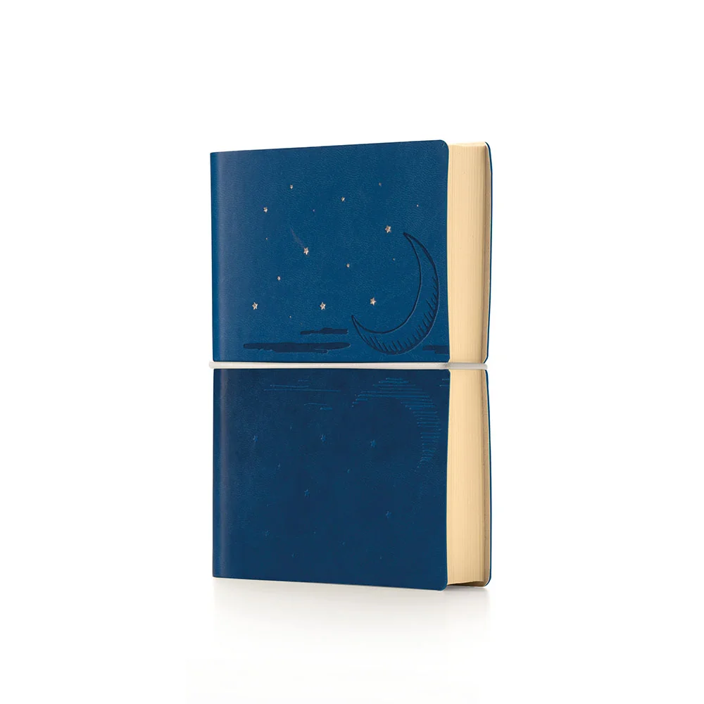 | Omslag | flexibel kunstleer met illustratie van maan met sterren |