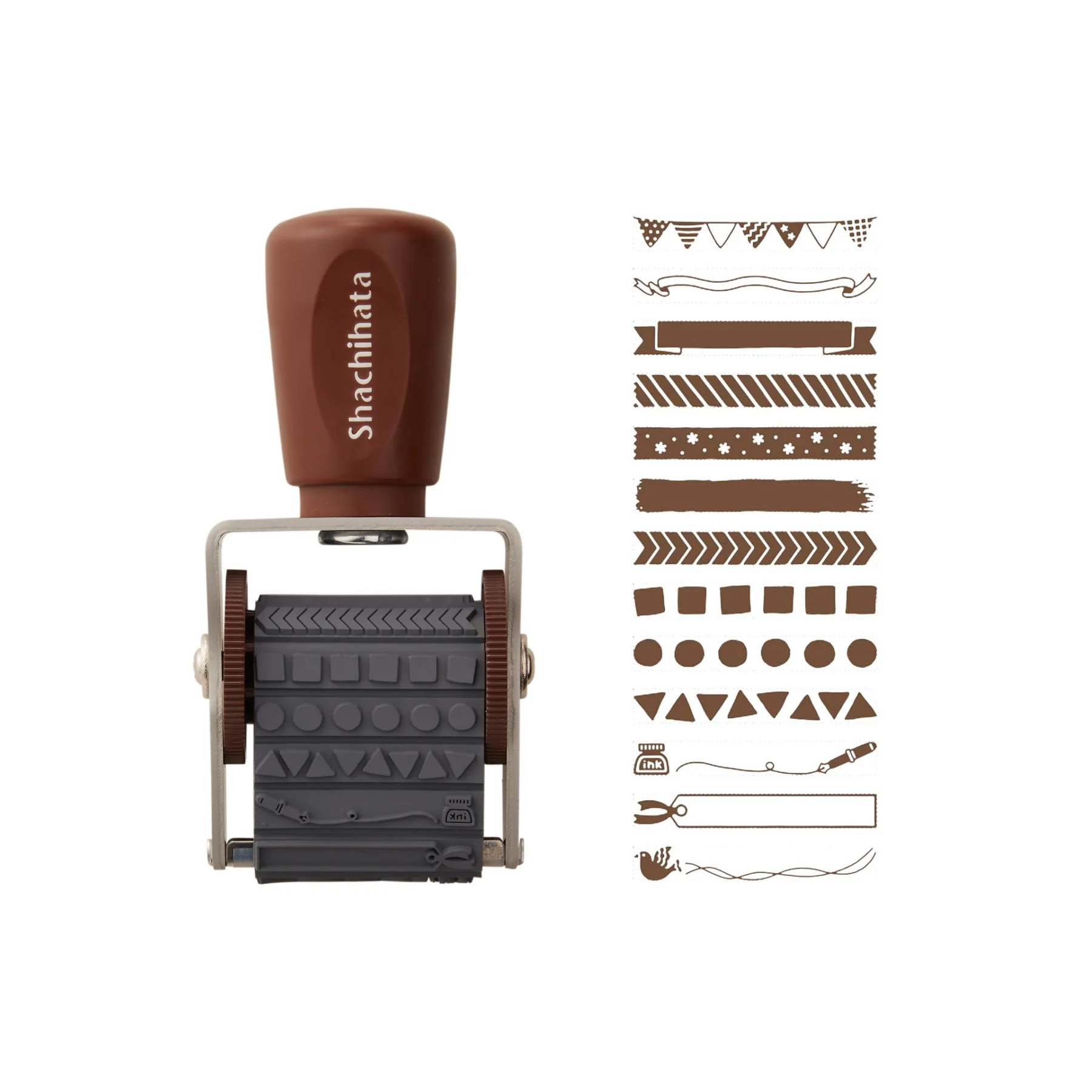 Soms heeft een pagina niet meer nodig dan een rustige lijn, een klein kader of een subtiel patroon. Met deze rolstempel van Shachihata wissel je moeiteloos tussen dertien ontwerpen die structuur geven zonder de stilte van de pagina te verstoren.